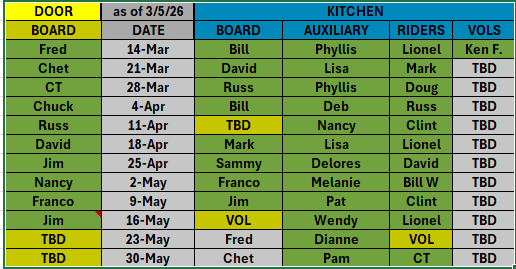 VOLUNTEER SCHEDULE