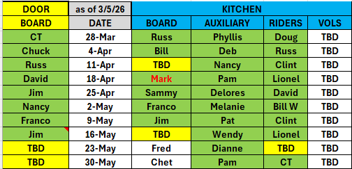 VOLUNTEER SCHEDULE